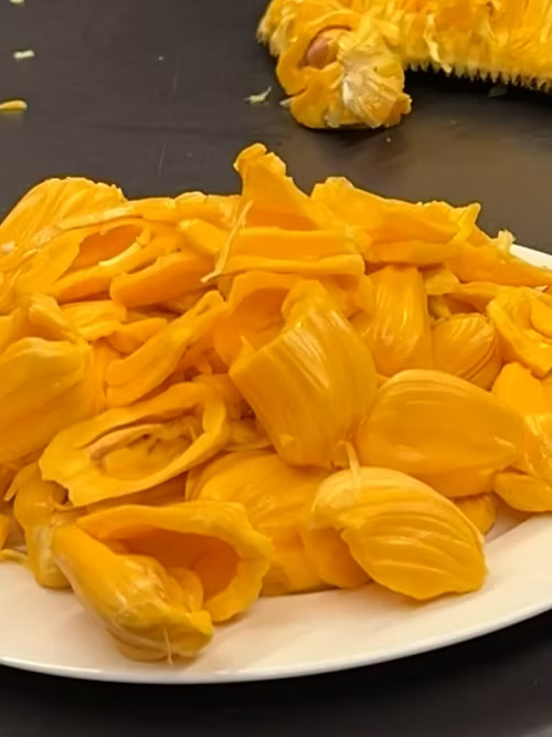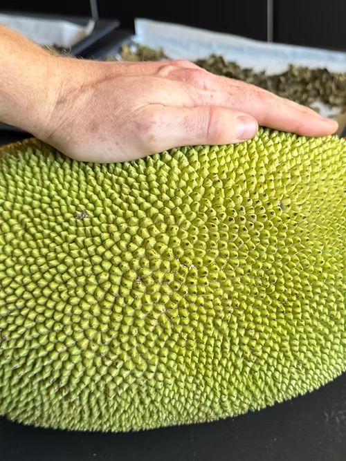 הכירו את הפרי הכי גדול בעולם: ג'קפרוט 'גולדי קראנץ''. כל פרי שוקל בממוצע 10 ק"ג, עם פלחים כתומים-זהובים, קראנצ'יים וטעימים במיוחד.